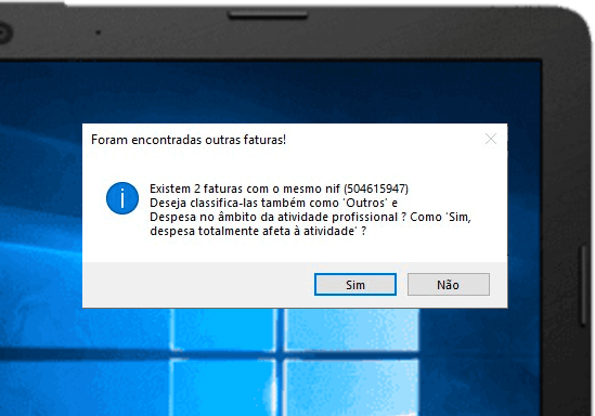 Agora, em cada ENI ou TI já lhe é permitido guardar em histórico a classificação atribuída do setor de atividade e o âmbito da despesa associado. O Gabinete Digita sugere aplicar essa mesma classificação às restantes faturas do comerciante em questão.